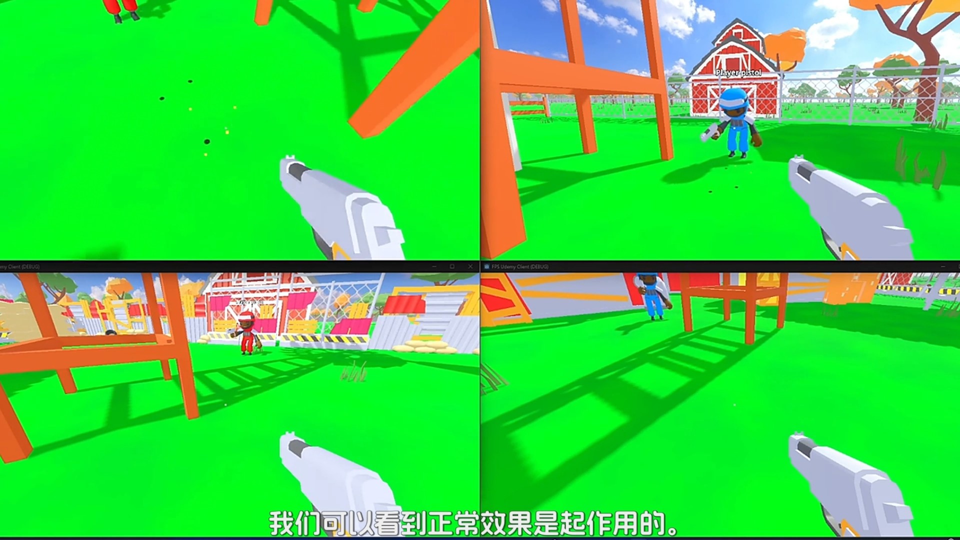 课程的主体部分聚焦于构建完整的射击战斗系统与流畅的多人互动体验。学员将学习如何设计并实现多种武器系统,包括武器的选择、展示、射击逻辑、弹道精度以及子弹命中的判定与反馈效果。在此基础上,一个健全的角色生存机制被逐步建立,涵盖生命值管理、伤害衰减、健康包与炸药等拾取物的交互逻辑。为了确保所有玩家看到一致的游戏世界,课程深入探讨了网络同步的高级技术,如远程玩家的生成、移动、动画、颜色及X轴旋转的精确同步,并通过动作插值和服务器-客户端时钟同步等手段,有效解决了网络延迟带来的视觉卡顿问题,打造出流畅且公平的竞技体验。