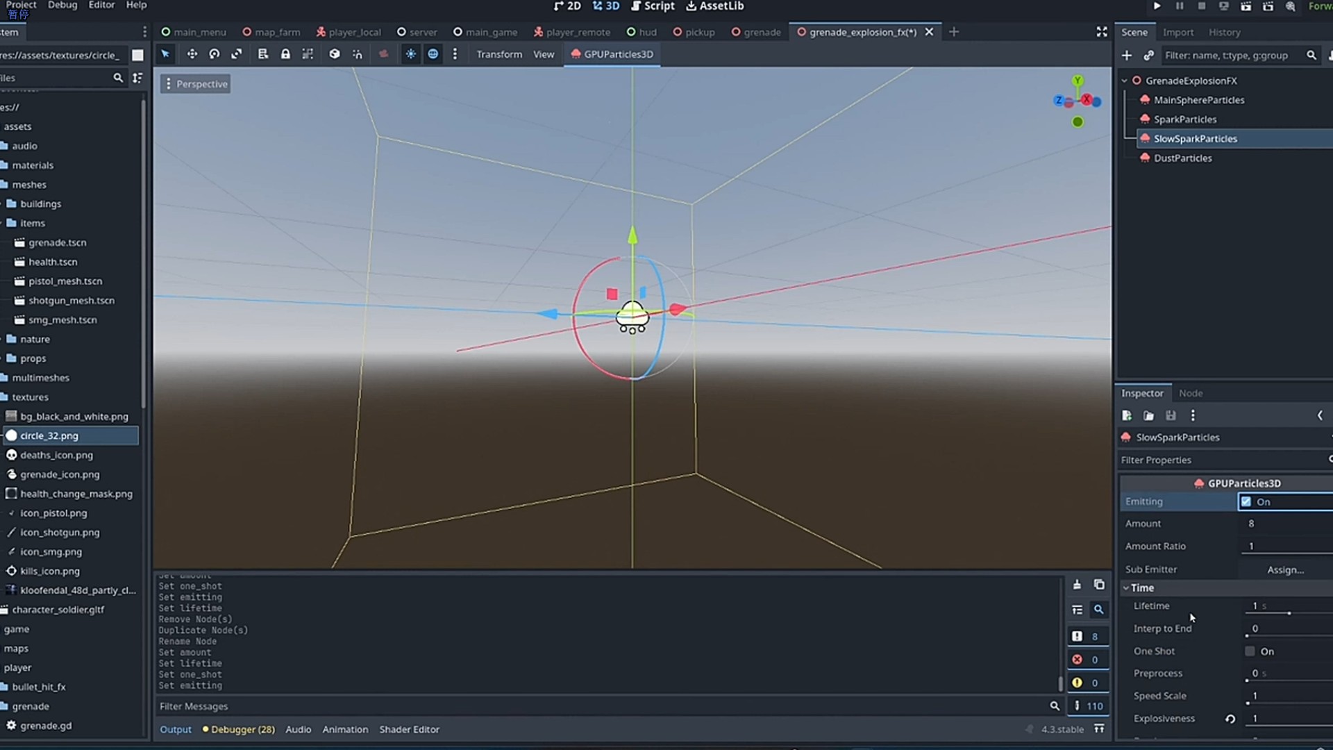 在核心玩法稳固之后,课程致力于提升游戏的整体品质感与沉浸感。通过集成屏幕震动、生命值变化特效、空间音频和本地音效等细节,极大地增强了战斗的冲击力与真实感。同时,一套完整的用户界面(UI)系统被精心打造,包括设置与暂停菜单、游戏计时器、实时得分板以及关键的淘汰提示文本,确保玩家能够清晰地掌握战局信息。此外,课程还特别关注游戏的完整性,实现了炸弹投掷与爆炸的连锁反应、危险区域的预警提示,以及比赛结束后的结算逻辑,使整个游戏循环严谨而富有策略性。