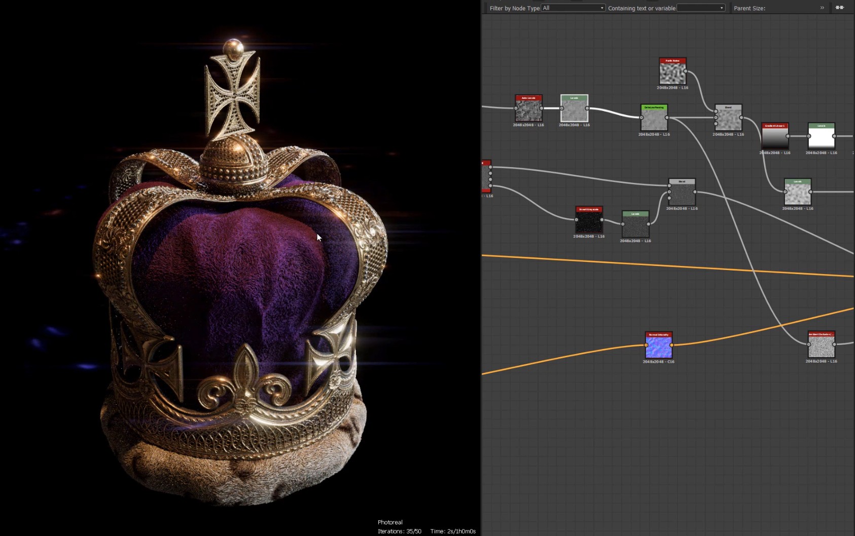 Substance Designer 创建逼真的皇冠。将演示他如何为金属饰品实现精细的细节和材质定义。