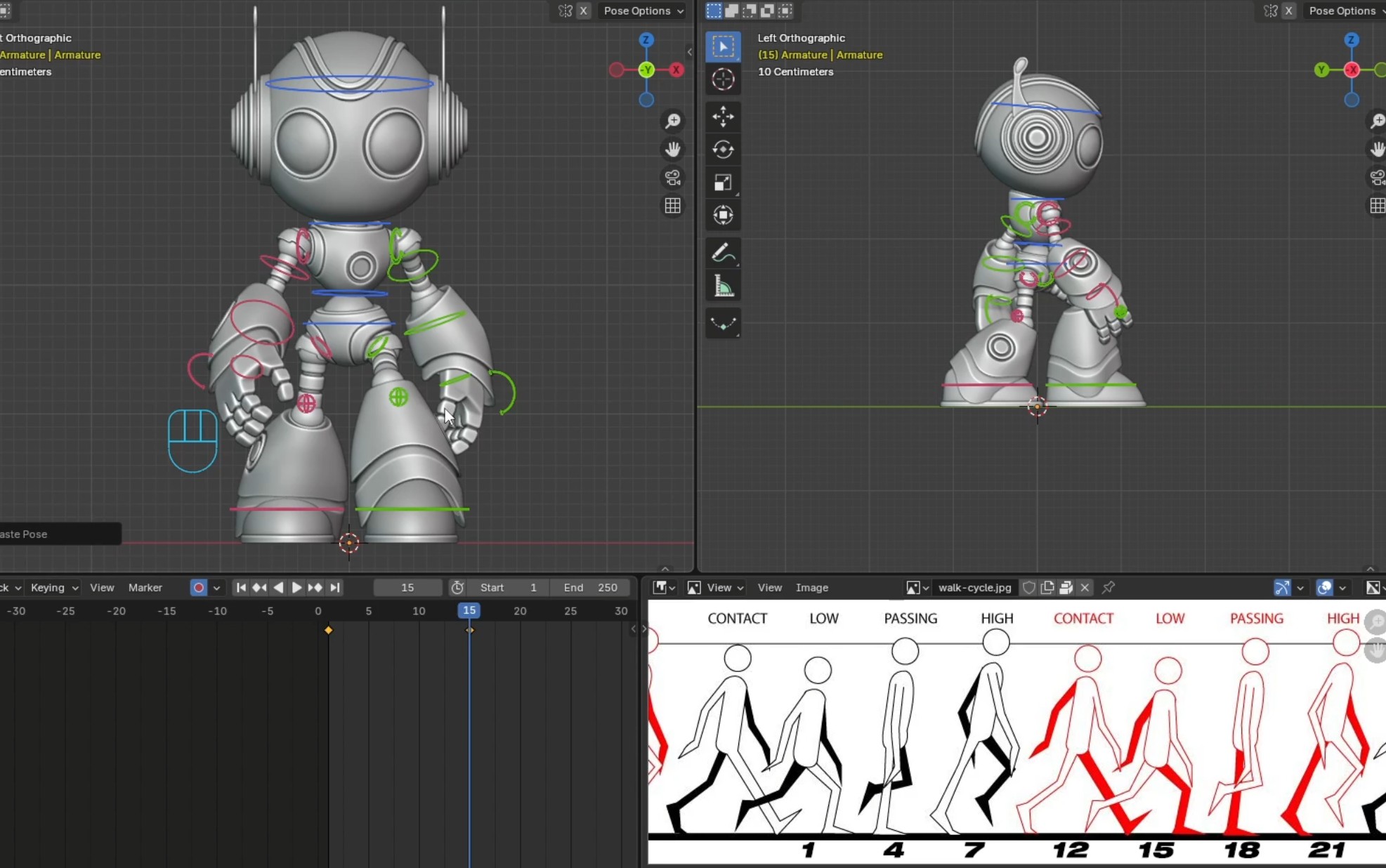 使用动作编辑器和动画曲线创建动态序列(行走、奔跑、跳舞)。NLA 编辑器允许您将动画混合在一起。